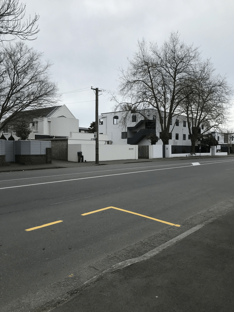 Carlton Mill Road runs from Bealey Ave to Rossall St and for a fairly short street it has a large number of dwellings. There are several tower like blocks of multi dwellings that were built in 1970s, 1990s and a huge number built in 2000. A couple of nice villas from 1920s and I thought that there was a house from 1900 but that was outdated information as it has now been demolished. The Christian Science Church has an unusual looking building. There was an entrance to a house with the words Woodford Grace on it but I couldn’t see the house as it was a long driveway. Edited to say that I googled Woodford House and it is a passive house. It is worth googling and checking out their website. It wouldn’t let me post the link. Along the riverbank behind the houses there was the Carlton Mill Reserve and I didn’t attempt to walk along it as it gave off a private keep out type of vibe but when I was on the other side of the river I did see people walking there.