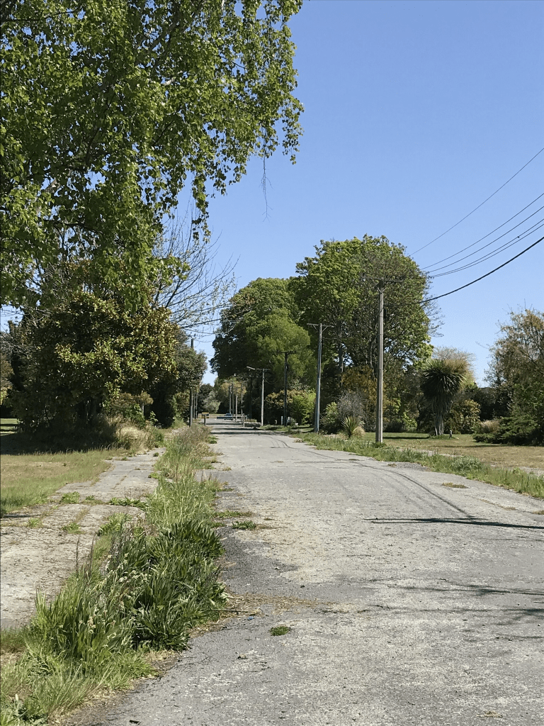 There are still a few houses near the Stanmore Rd end of the street. There are three or four built in 2019 and a couple built in 1970s. The cottage from 1910 looks very sad but the villa from 1920 looks OK. The house from 1930s looks very rundown and I thought it would have been because of the earthquakes but looking at street view from 2007 it was looking just as rundown then. Most of the street is red zoned and there was one really lovely house in 2007 but it has been demolished.