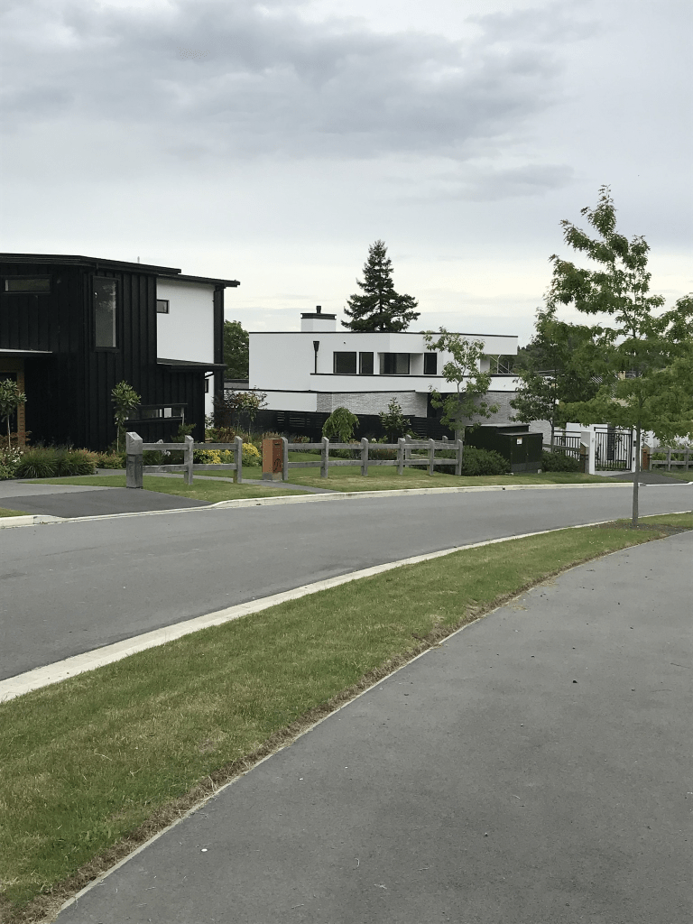 Saddle Vale Rise in Halswell and it is too new to be on the library website, It is part of the new Stoneridge Down boutique subdivision. There are two houses here that look like they are finished being built and they are interesting designs. I couldn’t decide if I liked them or not. Seriously well beyond my budget. At the end of this street is a small reserve with a picnic table and a walkway. I was geocaching in the area. I continued along the walkway and it ended up on a private driveway with several keep out and private property signs. The driveway seemed to lead to a house that possibly is the original house for 823 Cashmere Rd going by google maps.