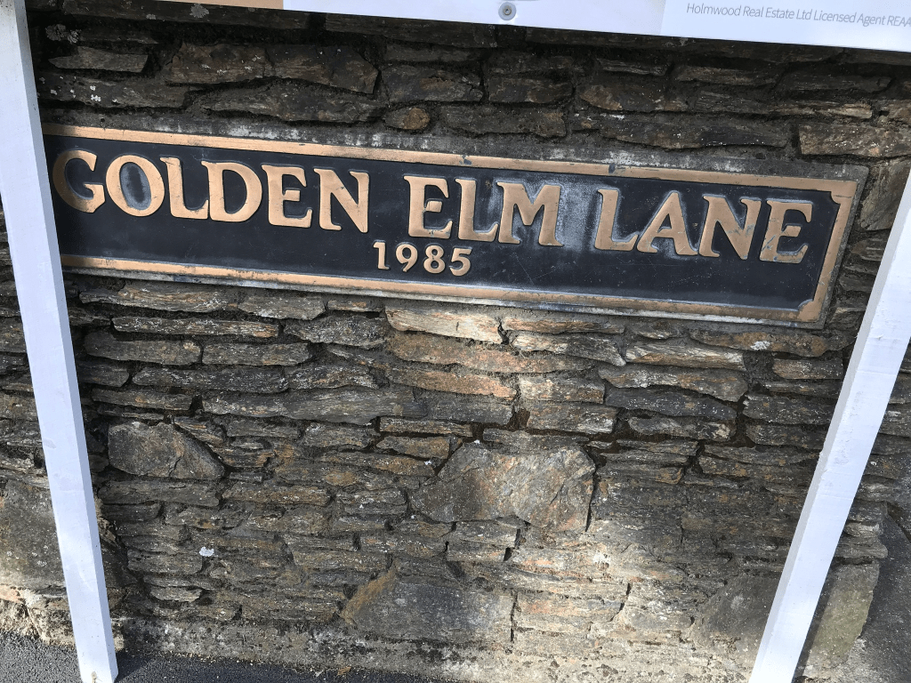 Golden Elm Lane in Upper Riccarton and nothing on the library website. There are only 6 houses here and 4 were built in 1980s and the other two were built in 1990s. It was a private lane and I didn’t actually walk it. There wasn’t a footpath and it just looked like a driveway to a couple of houses. There is a house for sale here but the houses here are seriously well beyond my budget. The lane was developed at 31 Lochee Road. It looks like there used to be a luxury accommodation place here but their website has been closed.