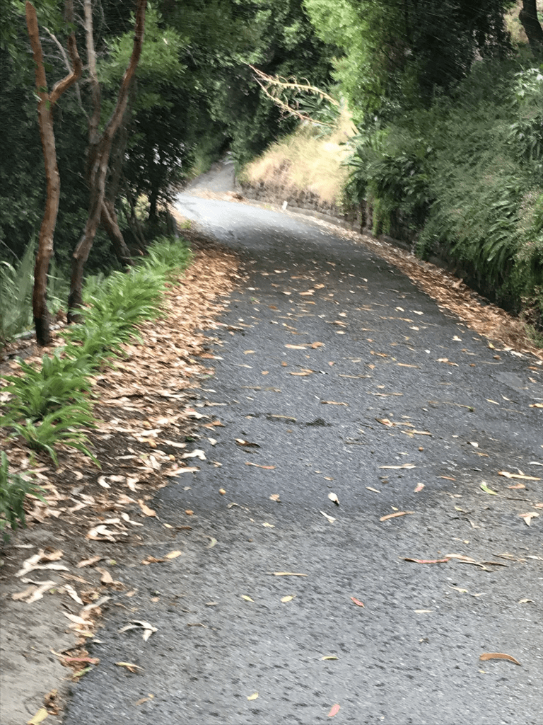 A very steep and narrow street with 5 houses and one dates from 1930. At least one resident isn’t worried the the new water rates as they were managing to water the road as well as their garden and I got wet. There was one lovely house at the top but my photo didn’t turn out very well and nothing on street view. There is a walkway at the top which takes you to Dyers Pass Rd.