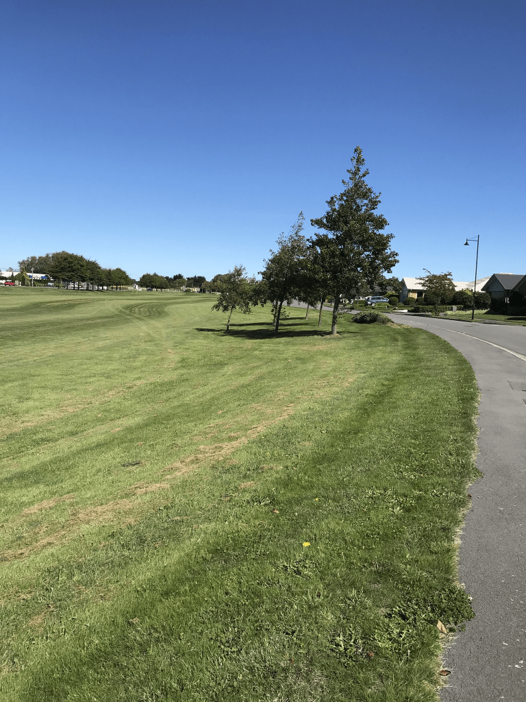 The houses here were built between 2013 and 2015 and none stood out for me. Mostly immaculate lawns with shrubs. On the long side of the crescent the houses were only on one side of the street. There is a wide green space between this street and Halswell Rd but suspect that you would still get noise from Halswell Rd. I was looking for somewhere to hide a geocache but no luck with that.