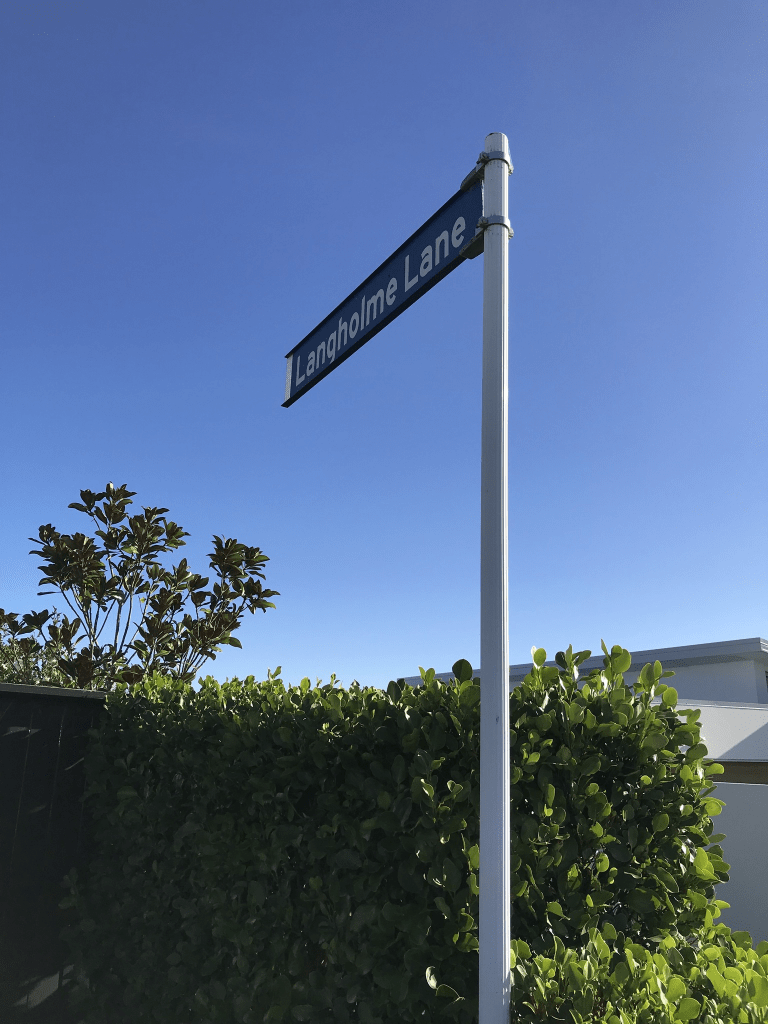 Langholme Lane in Westmorland – Probably named after Langholme Mill Cottage, a 17th century former corn mill, near Lowick in Cumbria. Named to continue the theme in the subdivision of naming streets after places in historic Westmorland in England, since 1974 part of Cumbria. Named in 2013.