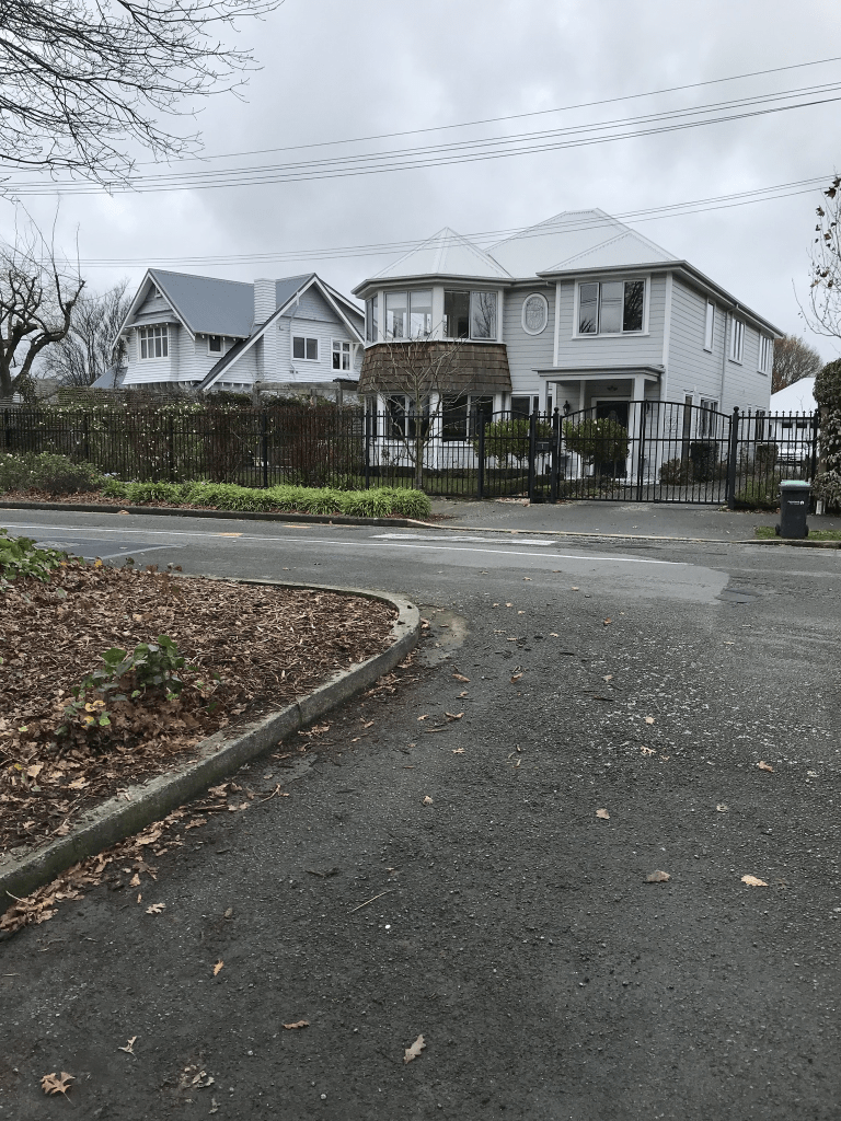 Only four houses here and two were built in the 1940s. The houses are gorgeous and seriously above my budget. The houses are only on one side of the street and there is parking for Riccarton House and Bush is on the other side.
