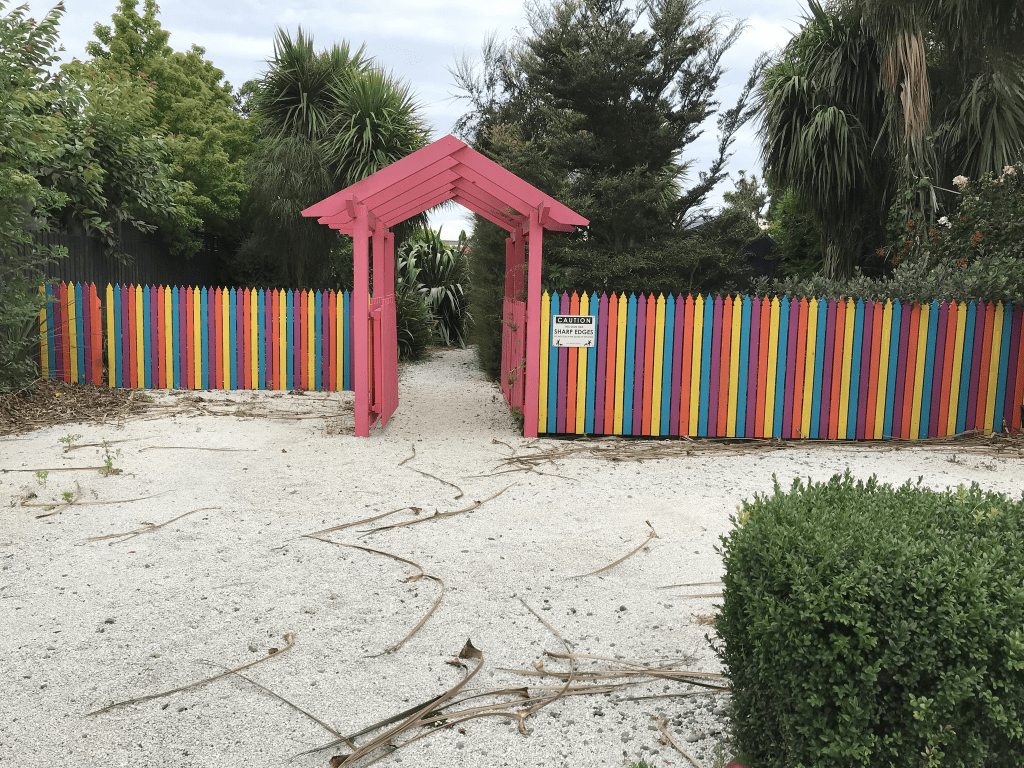 I walked this street on Sunday and I had parked on this street as this is plenty of parking because of Somerfield Park. The houses are only on one side of the street and on the other side there is the reserve and Somerfield Park. A few houses date from 1940s and a few from 2000s and what stood out for me the most was someone’s gate and fence.