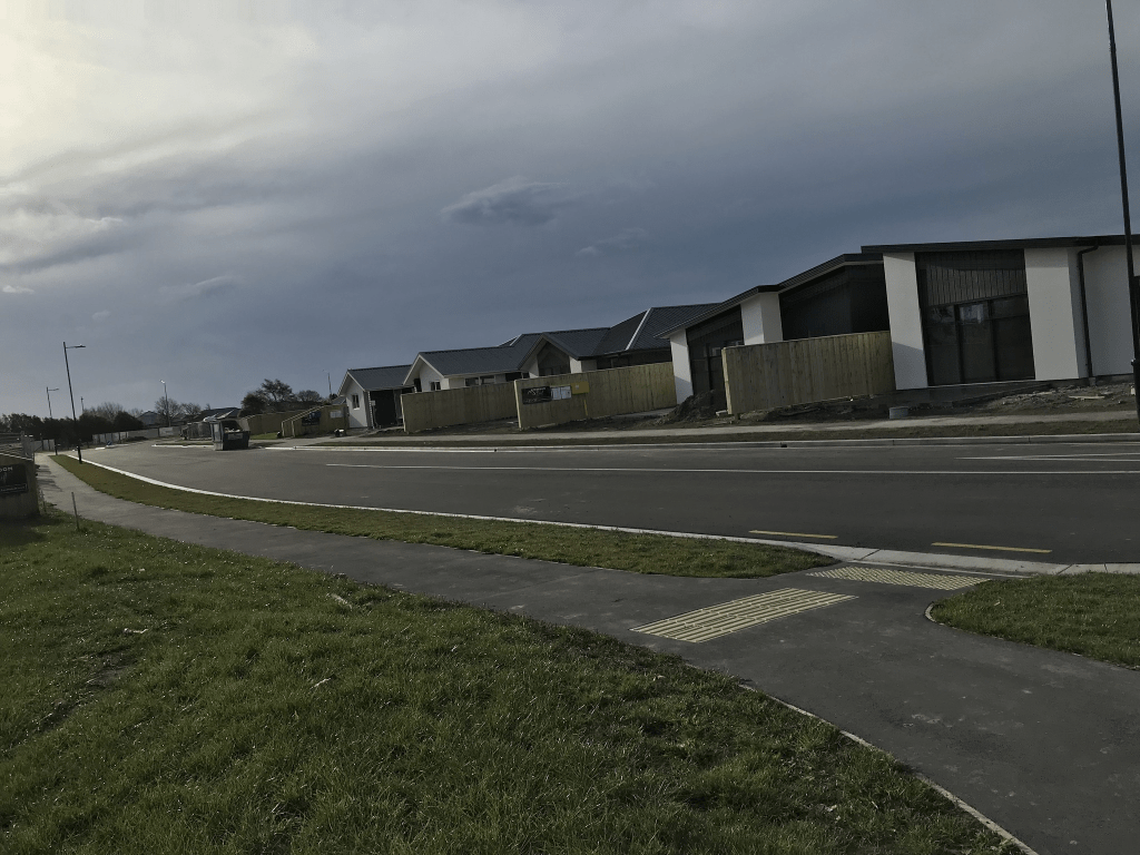 Eccles Place in Halswell. This street is too new for library website or google maps. Some houses have been built but most are still in the process of being built. Surprising for a street of this type it has a footpath on both sides of the street. No one living on this street yet.
