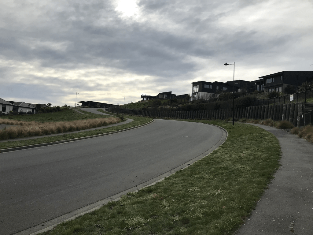 I don’t know why all the streets in this subdivision are in the suburb Kennedys Bush as all the surrounding streets are in Halswell. Kennedys Bush is the next valley over from this valley.