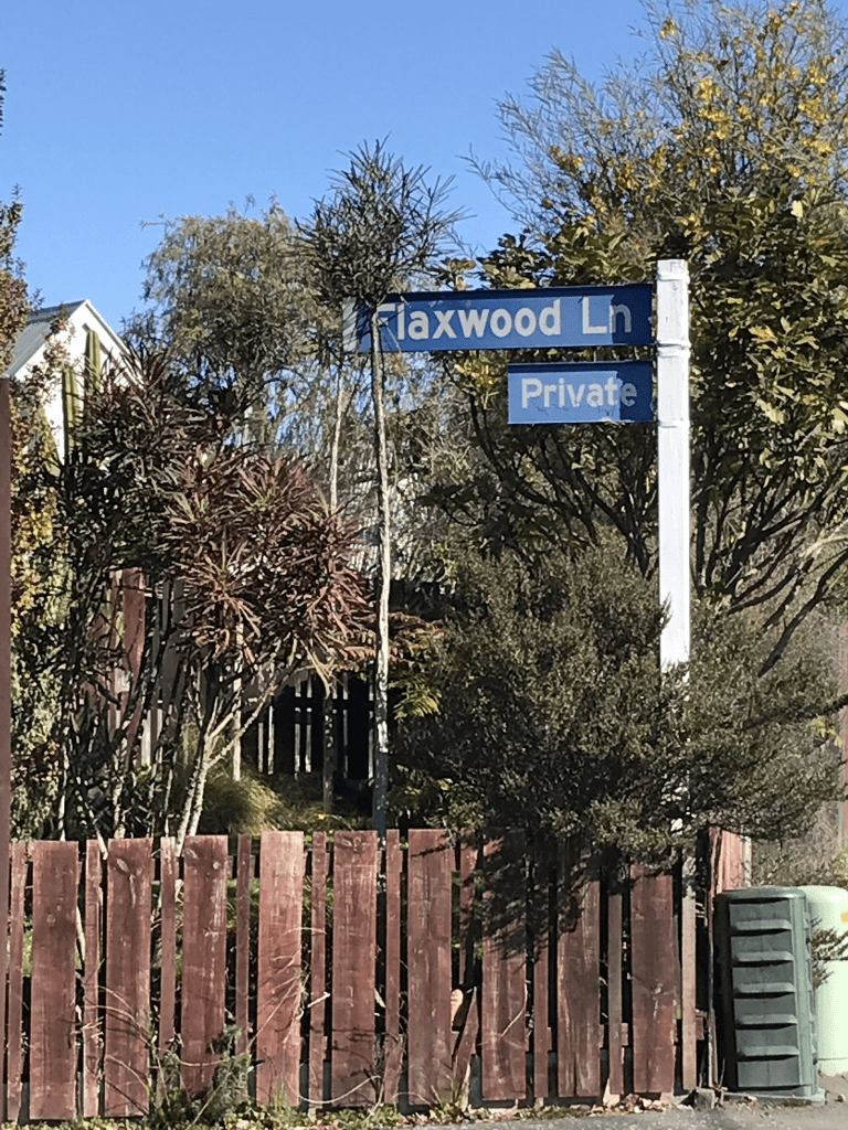Flaxwood Lane in Waltham and nothing on the library website. I checked Ancestry website, cemetery records and Papers Past and it isn’t a surname. There are 17 houses here all built in the 1980s. The ads on Papers Past from 1986 describe them as luxury homes.