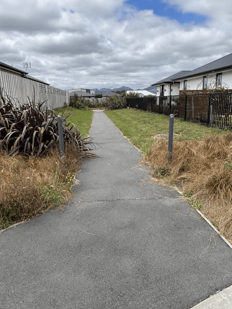 Dianthus Place in Wigram and too new for the library website. It would have been named after a plant. Houses built between 2020 and 2022 but none stood out for me. Footpath on only one side of the street and the best thing about the street was the walkway through to another walkway.