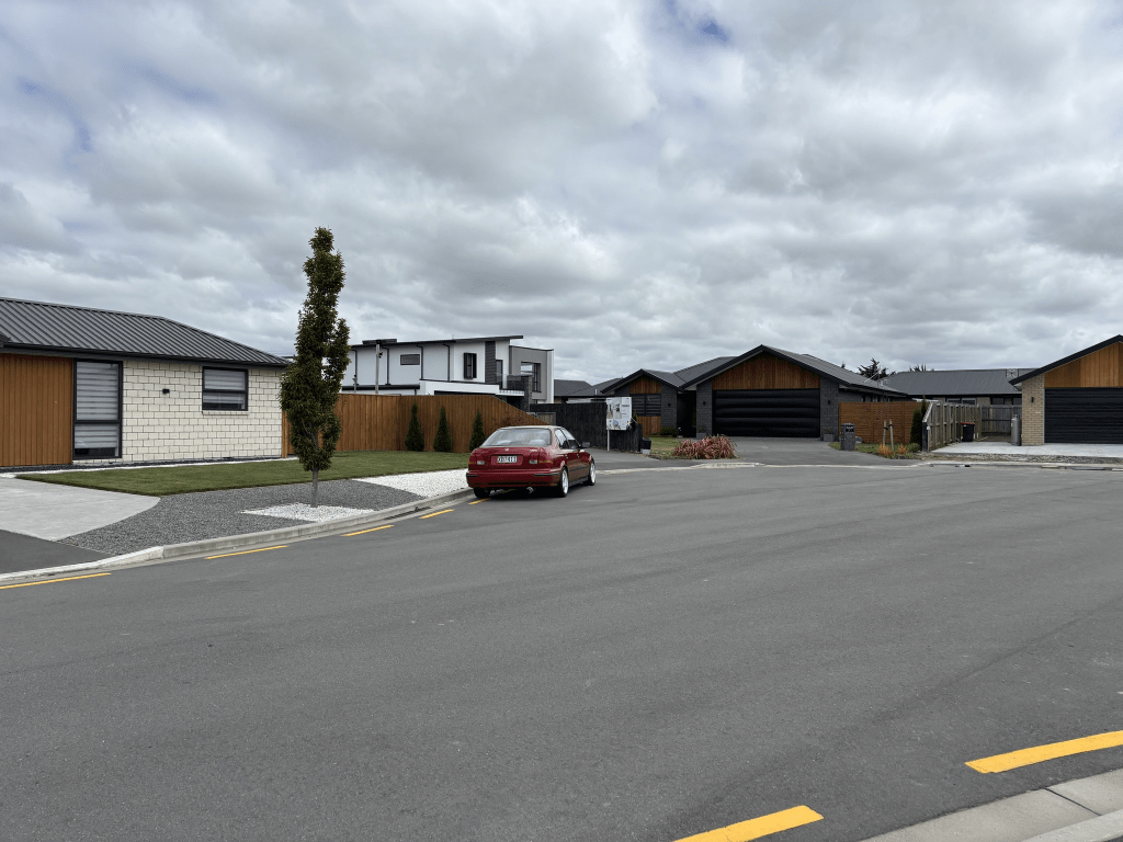 Lotus Place in Wigram and it is too new for the library website. It will have been named after a plant. The houses here were built between 2022 and 2024 and they looked OK but mostly just lawns rather than gardens. This street is next to a motorway and there is a tall fence between the motorway and the street but it could still get noisy. The footpath was on only one side of the street and even though there was plenty of parking in the street there were cars parked on yellow no parking lines. Get the feeling that I wasn’t overly impressed with the street.