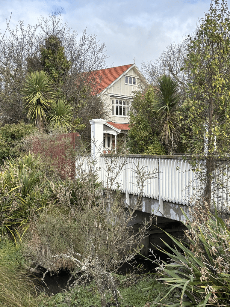 This is a short street with only 8 houses and a couple date from 1910 and a couple from 1920. One house from 1910 looked a bit rundown but the other other is gorgeous. The gorgeous house covers one side of the street and Dudley Creek runs between this house and the street.