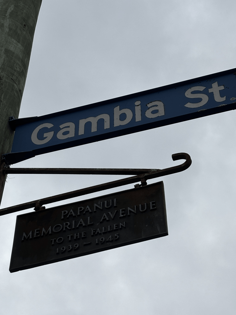 Gambia Street in Papanui – formerly part of Loftus Street. Named after the HMNZS Gambia. HMNZS Gambia, launched in 1940, was New Zealand’s largest cruiser. It saw active service with the British Pacific Fleet during World War II. A Papanui war memorial street. First appears in street directories in 1946. Source: Papanui Heritage Group