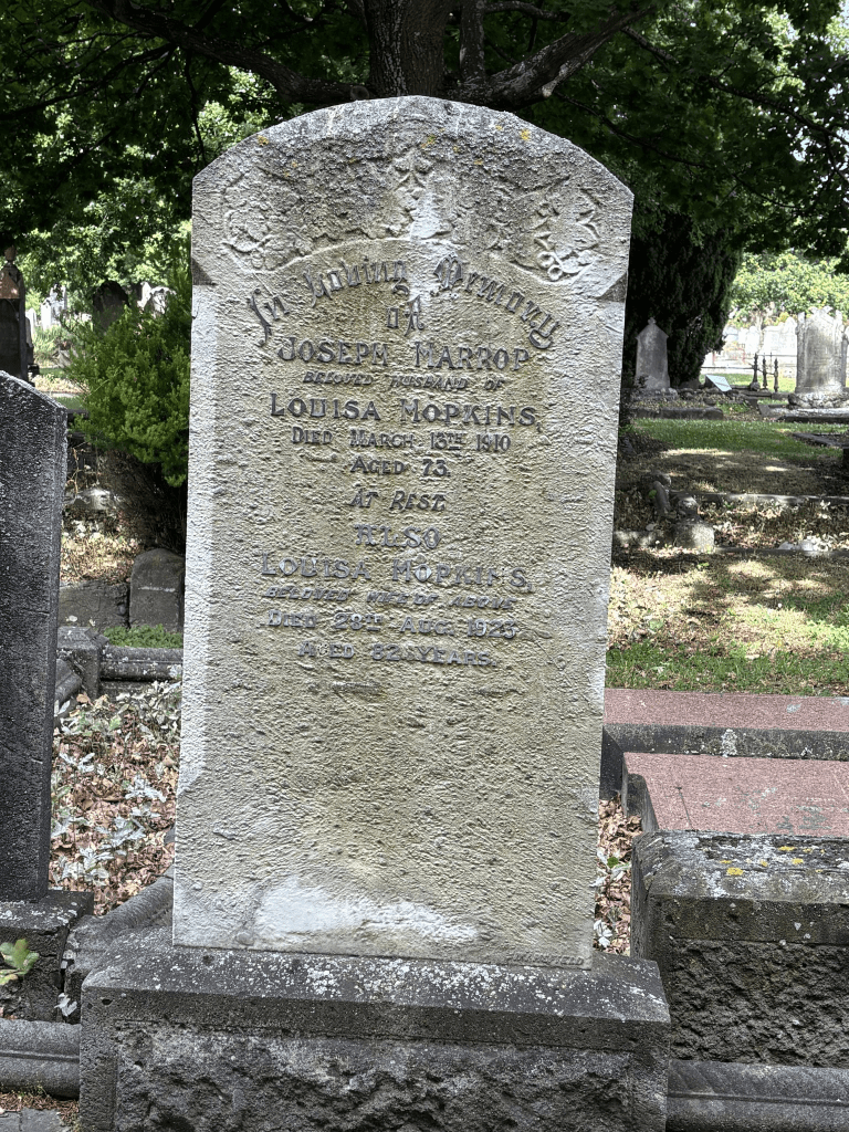 The Wikipedia entry for Woolston is interesting as it claims that it was named after Woolston in Southampton where Joseph Harry Hopkins was born. Joseph was not born in Southampton and there are two places in England called Woolston and neither are anywhere near where Joseph was born or where he lived. There was possibly a place called Woolston near where he grew up but it no longer exists. It wasn’t easy finding out about Joseph Harrap Hopkins and it took me all afternoon. I did have a quick walk to Addington Cemetery to find his grave.